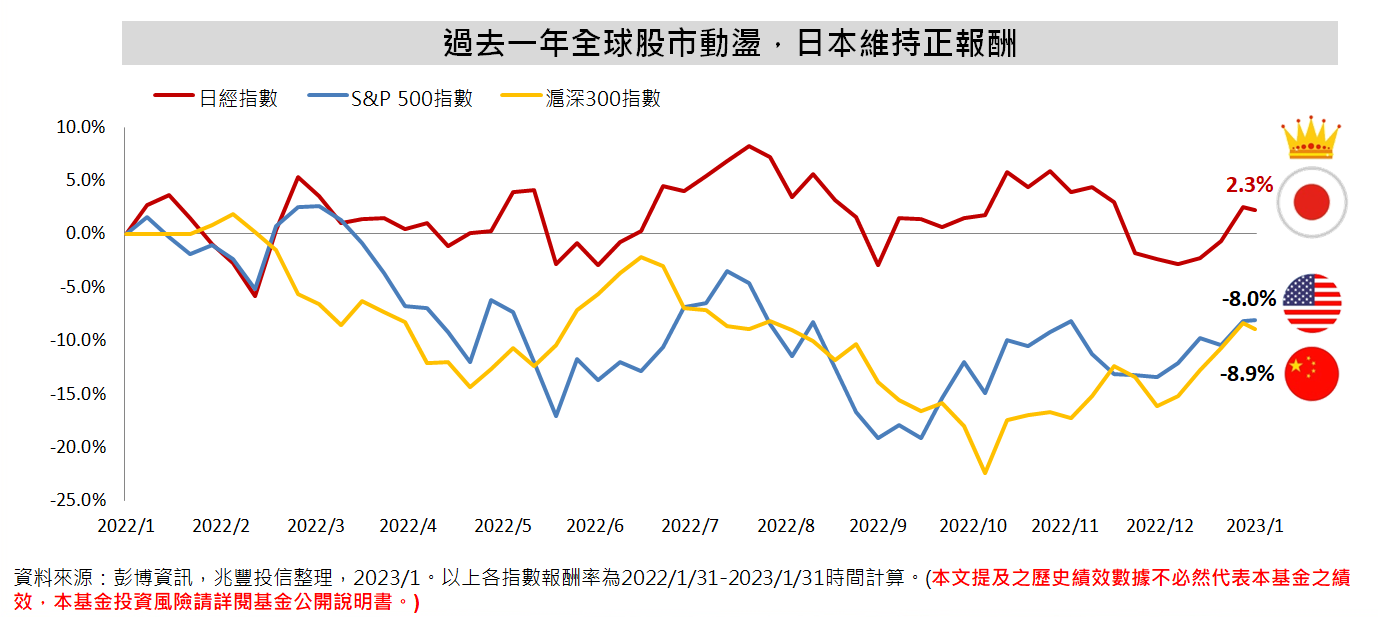 日本景氣正在復甦,2022年全球股市動盪,日本卻能維持正報酬(見下圖),四大優勢【旅遊】、【科技】、【動漫】、【房產】一定要認識。