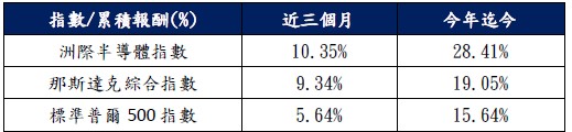 表:近期洲際半導體指數與相關指數漲跌幅表